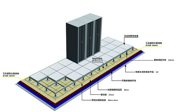 机房作为数据的处理和枢纽中心,成为信息系统中重点保护对象,而机房设备多,电源线、通讯线、数据线互相交叉,又极易遭受感应雷击,所以机房防雷问题是系统集成中必须重点考虑的问题,为确保各智能化系统稳定可靠运行及保障机房有良好的工作环境,设计须考虑做到技术先锋、经济合理、安全适用。除满足《机房防雷设计规范》(GB50174-93)与《建筑物防雷设计规范》(GB50057-94),《建筑物电子信息系统防雷技术规范》(GB50343-2004)要求的同时,绝缘体的静电电位不应大于1kv,机房内的导体必须与地面作可靠的联接,不得有对地绝缘的孤立导体,接地电阻不应大于4Ω,同时还应符合现行国家有关标准规范的规定。