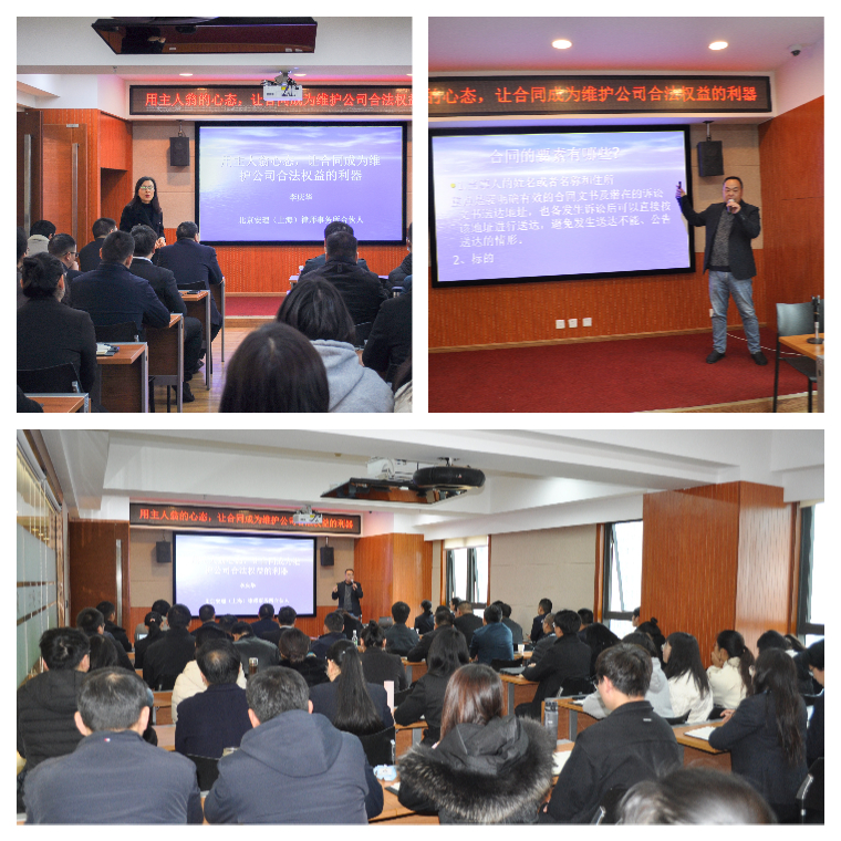 为增强全体员工的法律基础知识,提升法律素养,规避合同全生命周期管理过程中的法律风险,保证公司业务经营的可持续发展,3月3日上午,公司特邀李庆华律师开展了以“用主人翁的心态,让合同成为维护公司合法权益的利器”为主题的法律基础知识专题培训。