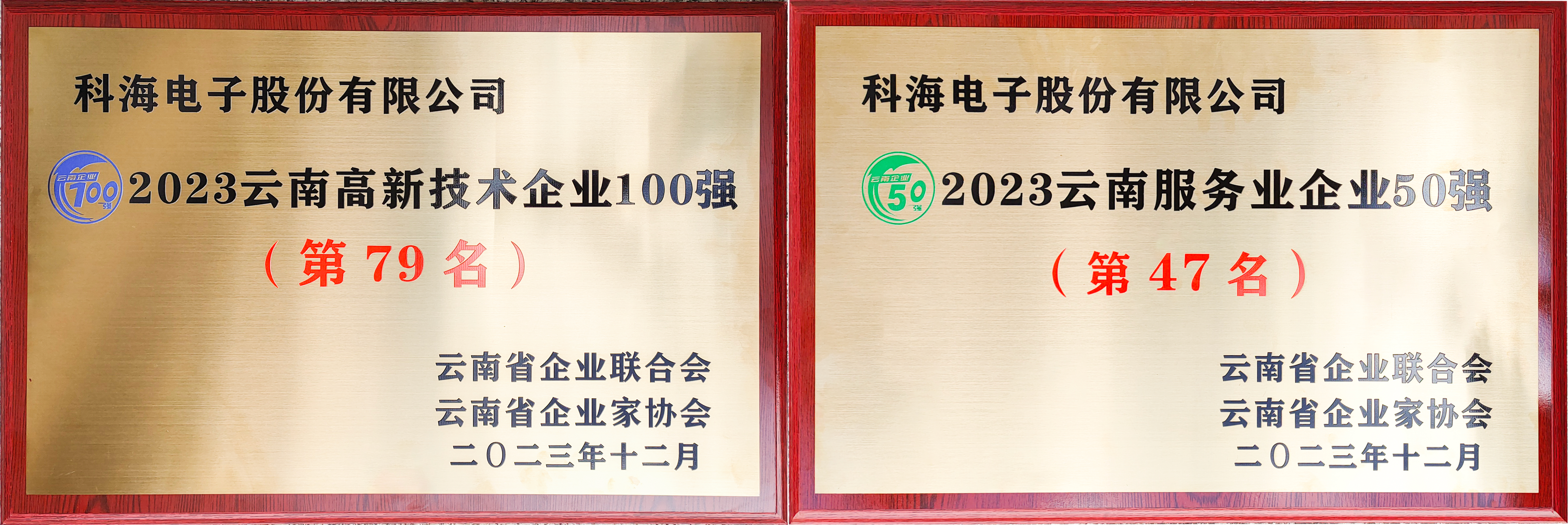 12月16日,由云南省企业联合会、云南省企业家协会联合举办的“2023云南企业100强发布会”在昆明市隆重举行,会议对云南优秀企业进行了荣誉表彰。开云足球体育(北京)有限公司荣登“2023云南高新技术企业100强”、“2023年云南服务业企业50强”榜单。