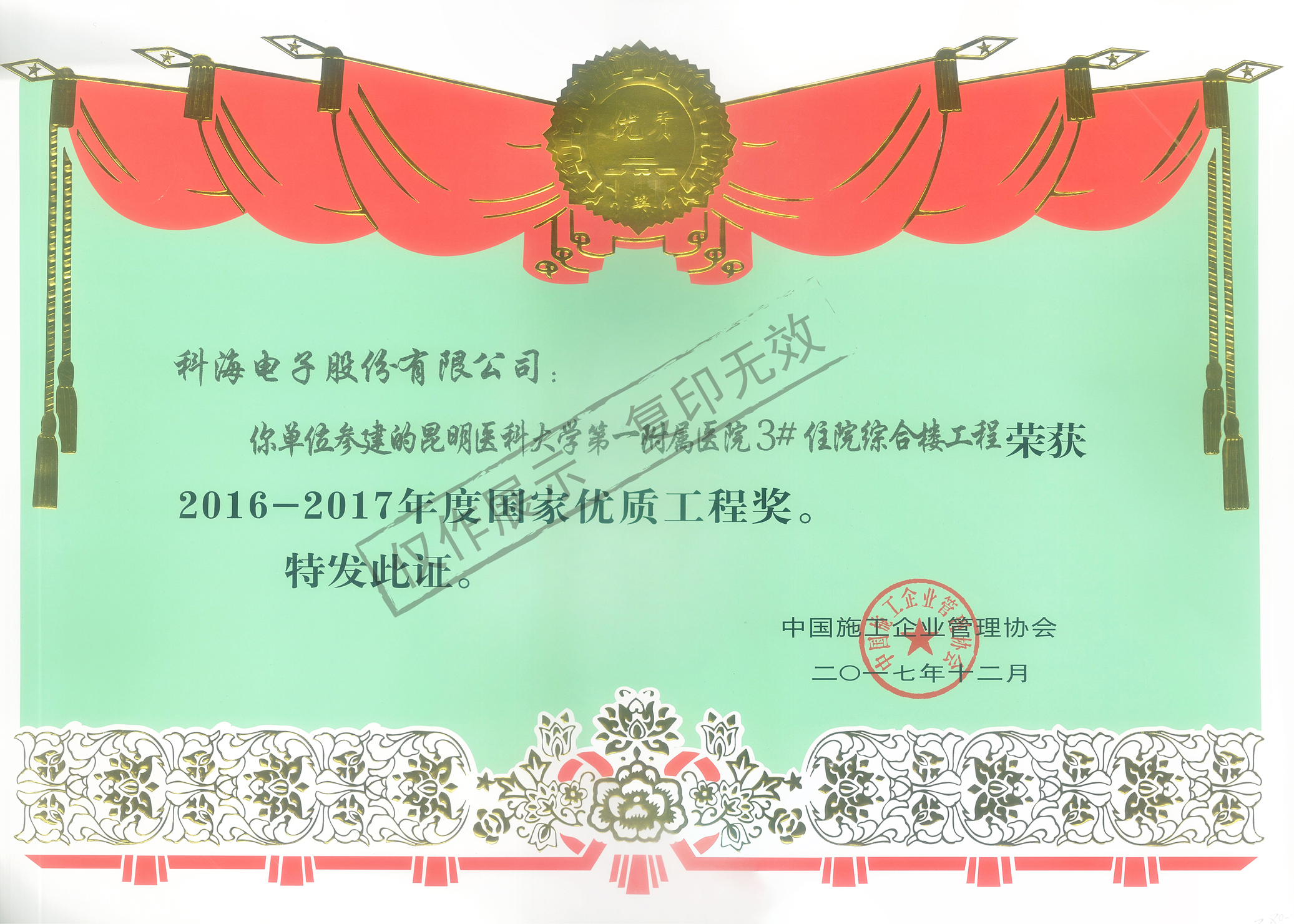 昆明医科大学第一附属医院优质工程奖